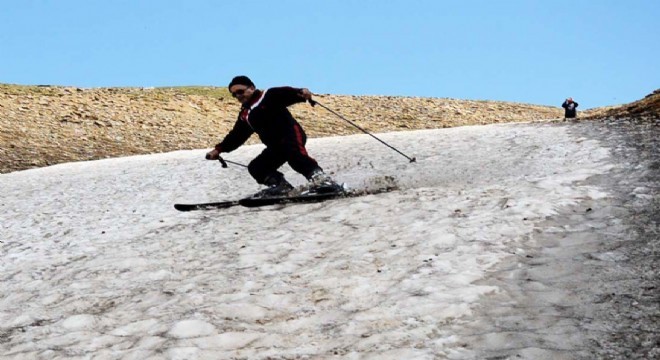 Muş’ta temmuz ayında yüksek kesimlerde kayak keyfi yapan vatandaşlar, karın üzerinde karpuz kesip piknik yaptı.