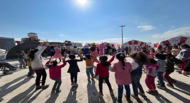 Enkaz yığınlarının gölgesinde çadır kentte tiyatro